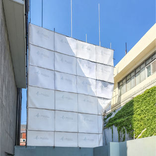 자재 사용 개요: 소형 건물 리모델링 현장 외부 강관비계에 쉽게 설치되어 주거 지역 내 건설현장에서 발생하는 소음을 효과적으로 저감